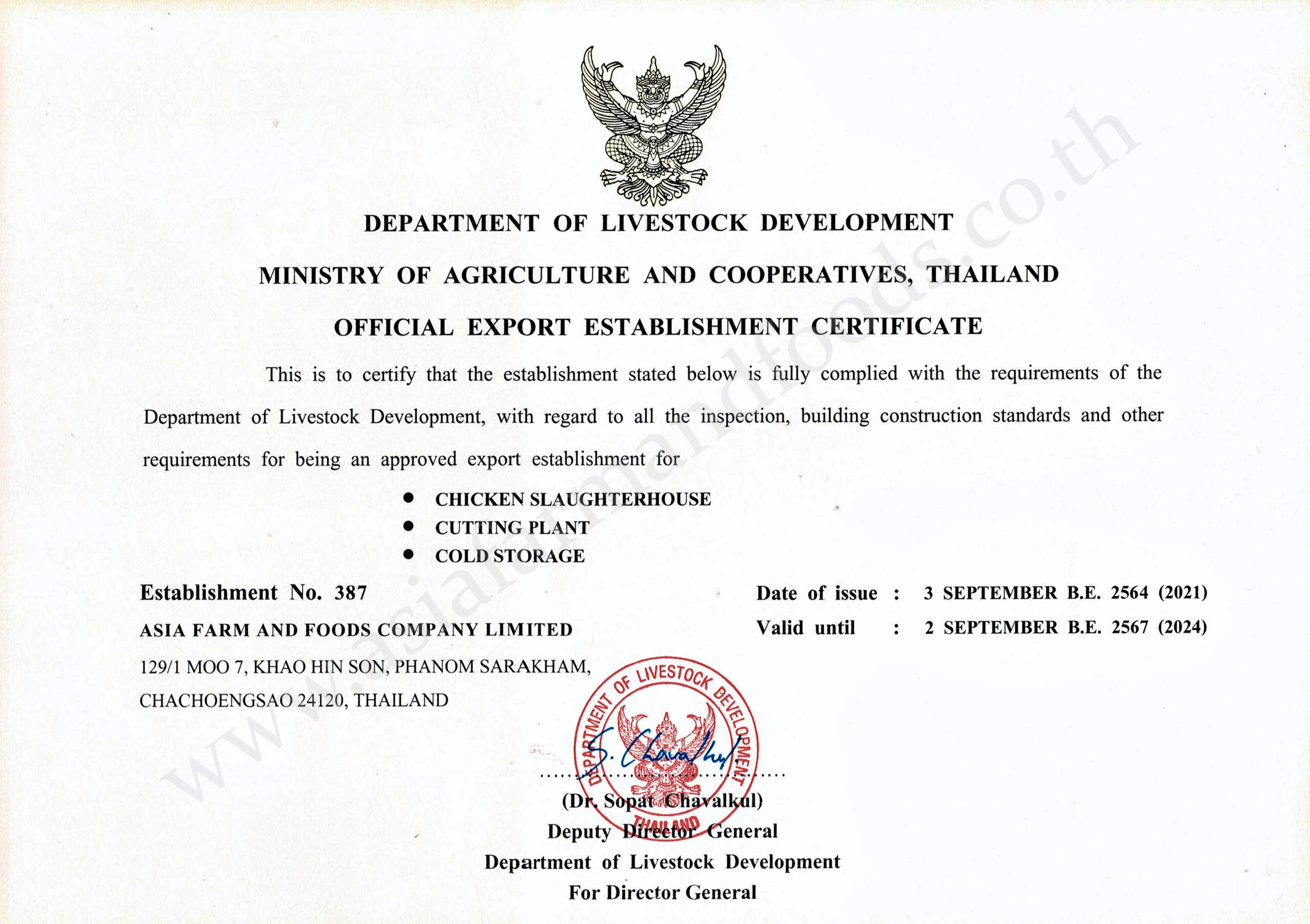 ใบรับรองหลักเกณฑ์และวิธีการที่ดีในการผลิตอาหารเพื่อความปลอดภัยของผู้บริโภค
